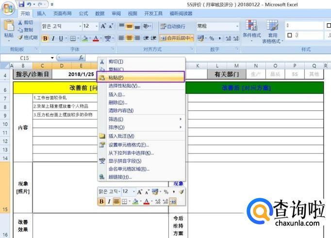 然后我们再打开刚刚的Excel文档,进行右击,选择粘贴;