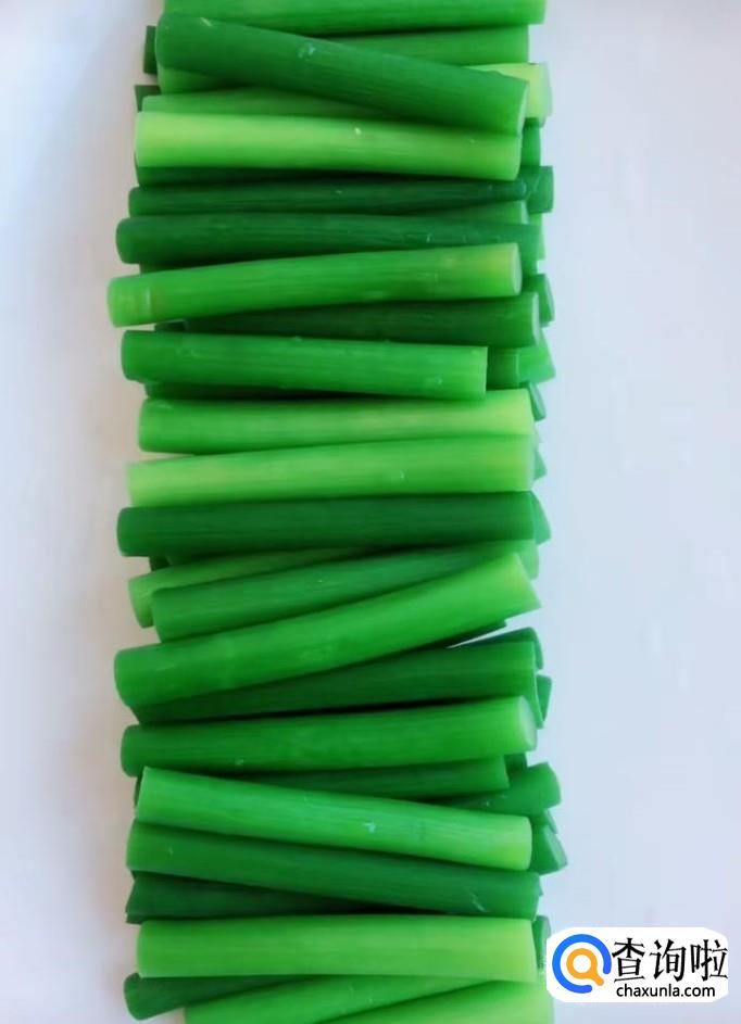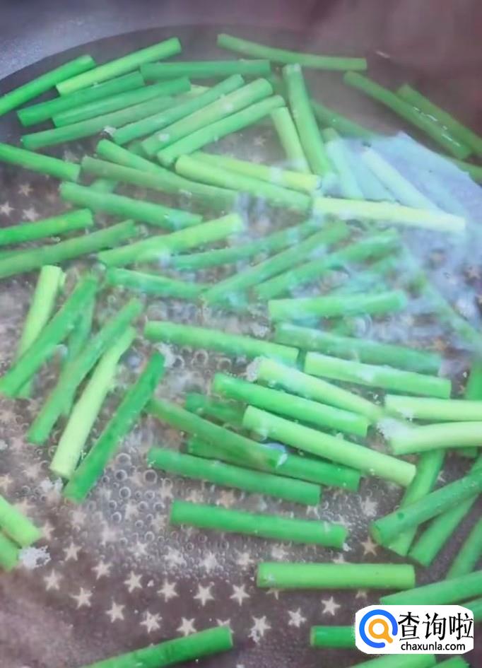 首先我们将苔菜清洗干净,切掉根部,切段放入热水锅中,焯两分钟捞出