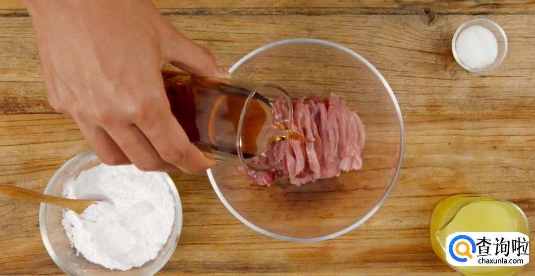 将里脊肉洗净切丝,肉丝不能太细。