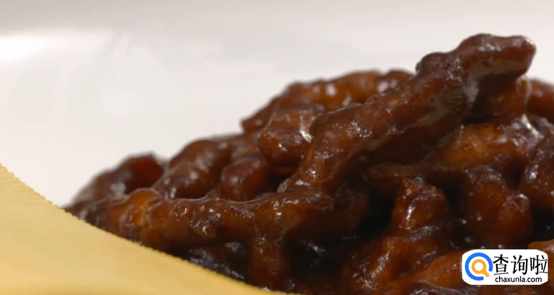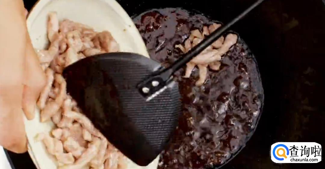 将肉丝倒入酱汁中,不断翻炒上色,翻炒均匀,然后盛盘即可。