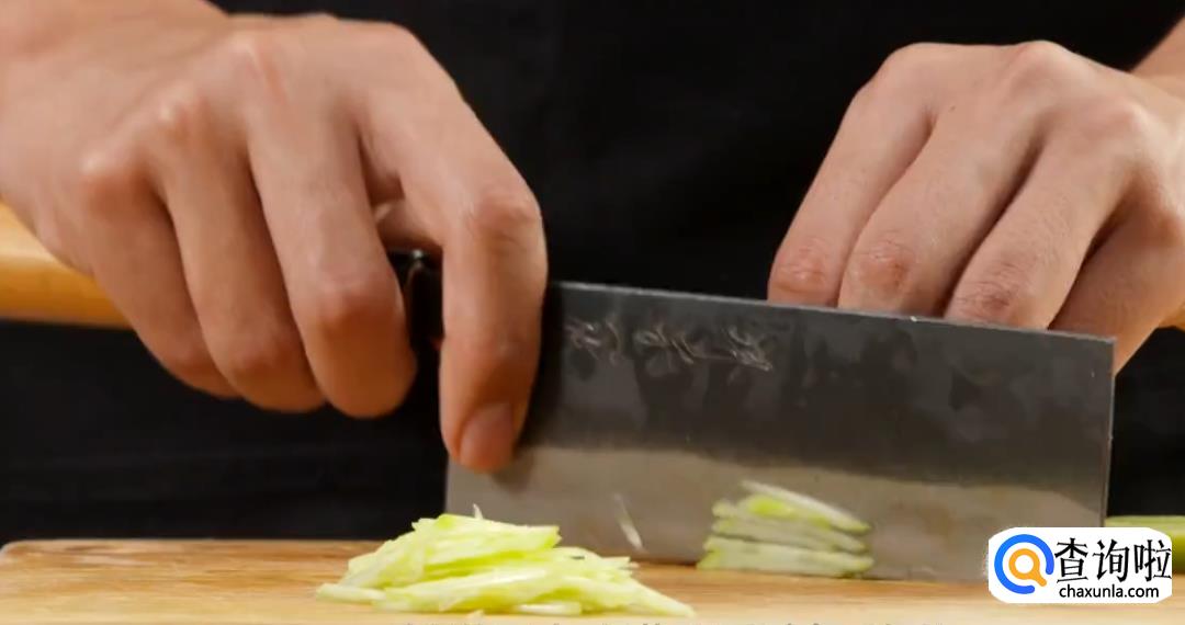 将黄瓜和大葱切丝。