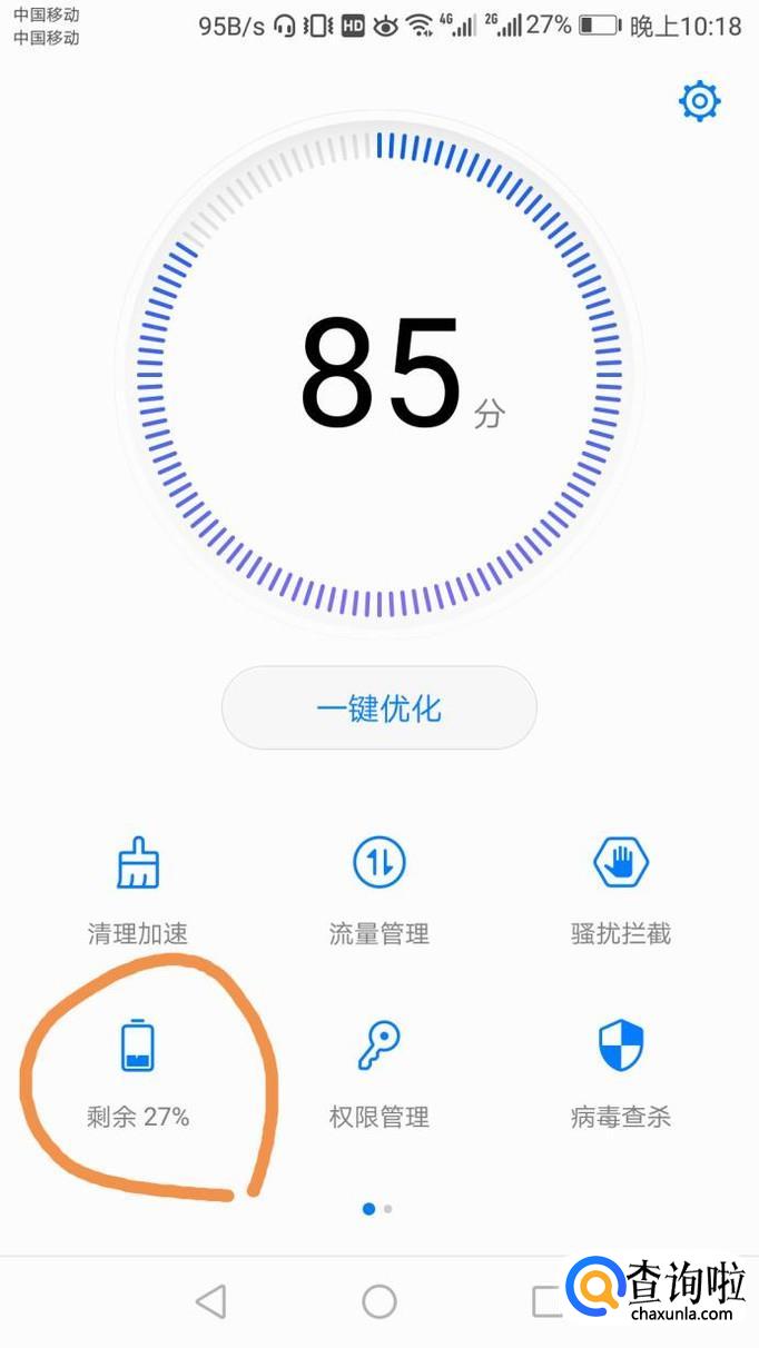 点击手机管家,再点击左下角的“电池管理”,如图