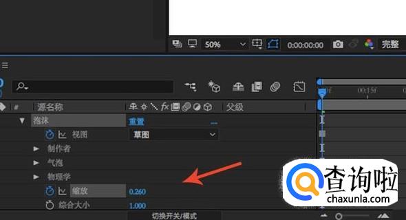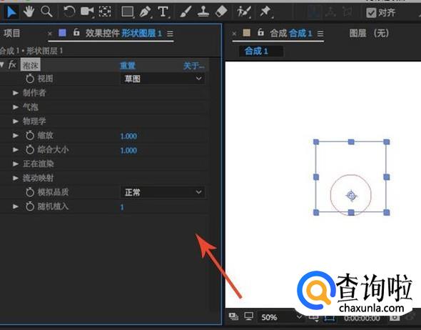 添加泡沫效果之后在左上角即可看到效果控件面板,调整数值即可。