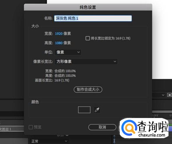 在出生呢固态层设置界面,将宽高数值设置为合成相同,点击“确定”