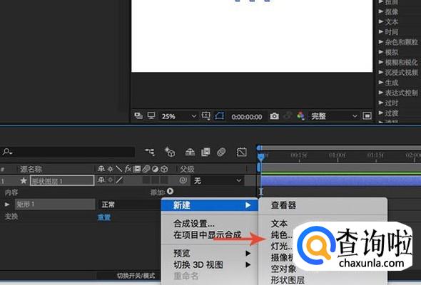 合成创建完成之后,在工具栏中选择任意一个形状,然后添加在合成中。