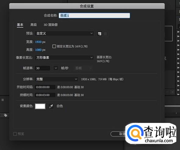 打开电脑中的AE软件,CTRL+N新建一个合成,合成的帧速率一般情况下30就够了。