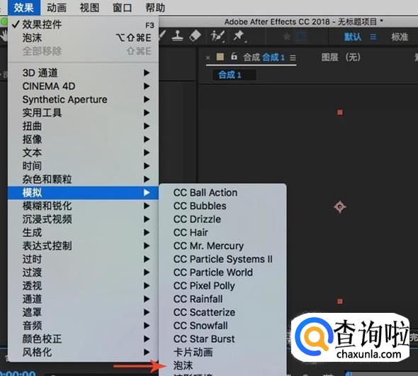 成功创建纯色固态层之后,点击“效果-模拟-泡沫”