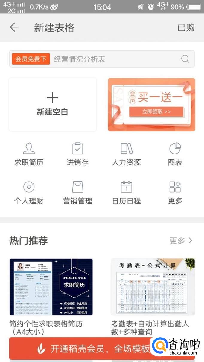 紧接着,点击新建空白,再点击下方的最左边的第一个图标。