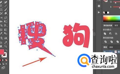 创建轮廓之后,我们就能够看到文本进行了转曲操作,轮廓上都出现了相应的锚点。