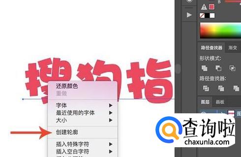 选择工具之后没有办法看到锚点,这个时候来教你如何解决,右键点击文本信息,然后选择“创建轮廓”