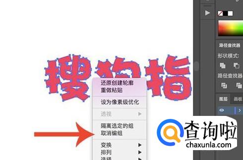 接下来再次右键点击文本图层,然后选择“取消编组”