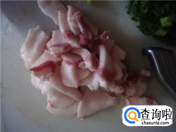 将五花肉切片,葱切成葱花。