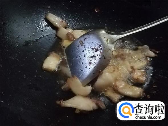 把锅烧热,倒入五花肉爆一下油。