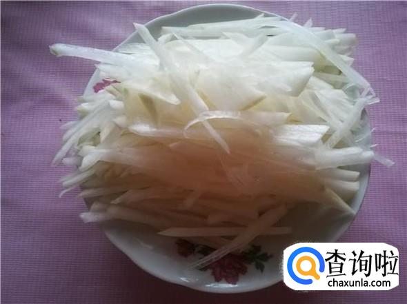 将白萝卜洗干净,手工切丝,不要切得太细了,可以不用去皮,洗干净就好。
