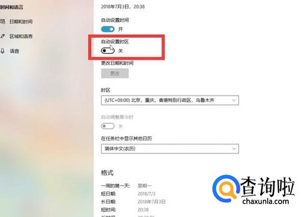 首先进入系统的设置界面,将自动设置时区关闭,如下图所示