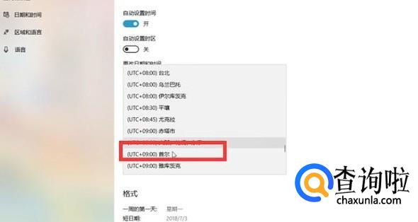 接下来将时区更改为首尔选项,如下图所示