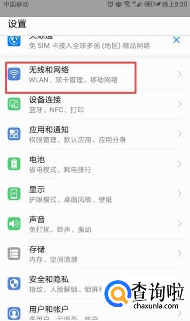 弹出的界面,我们点击无线和网络;