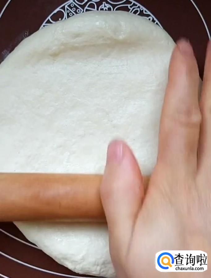 接着我们把醒发好的面擀成皮,用刀子割几个口,如图所示
