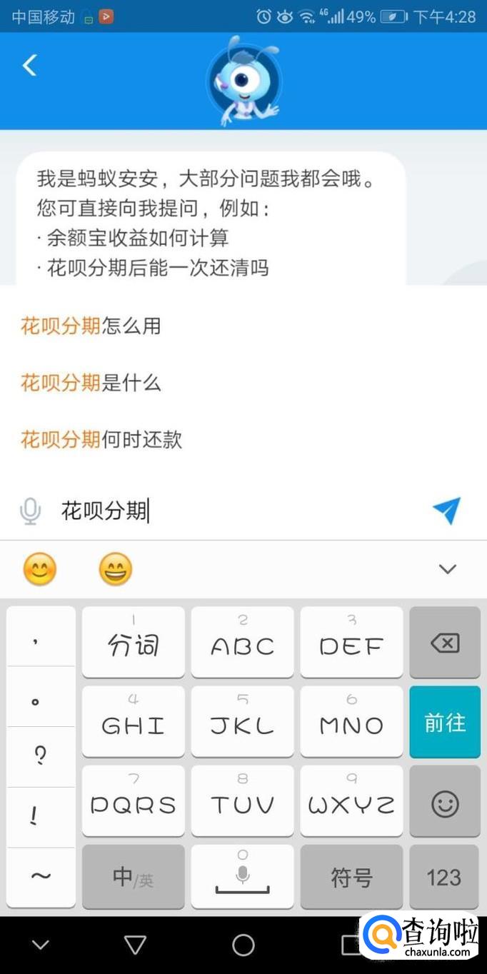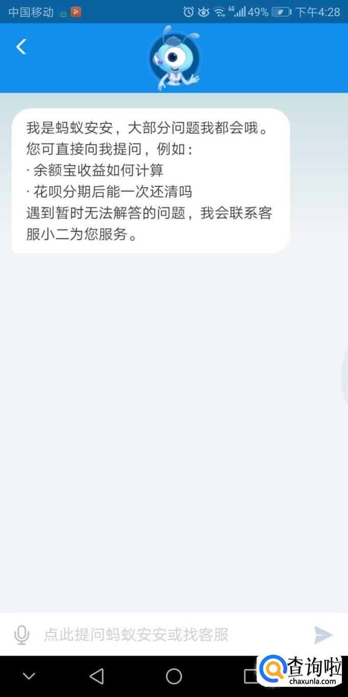 直接输入问题点击发送给智能机器人客服蚂蚁安安。