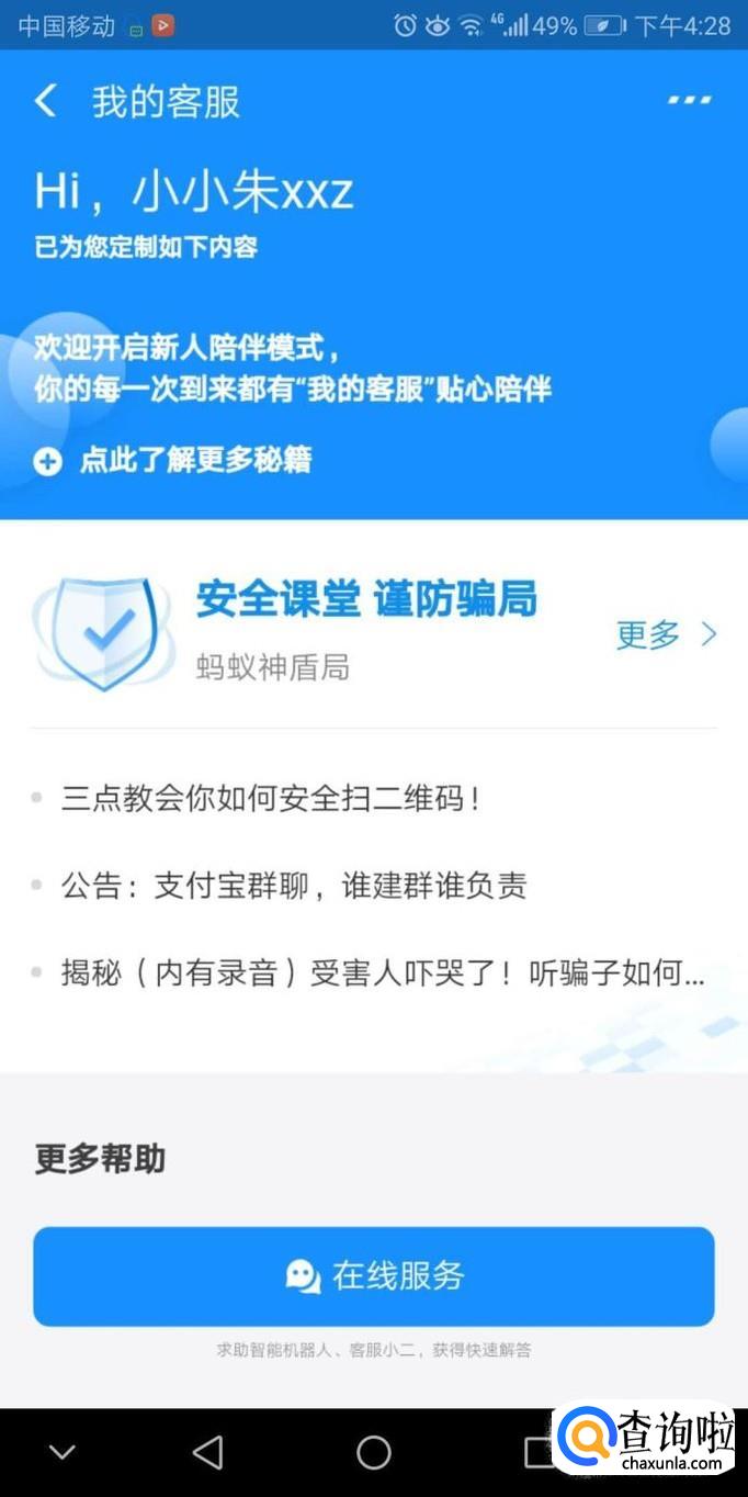 可以直接点击系统自动准备的问题进入。上滑手机到最底部,点击在线服务进入。