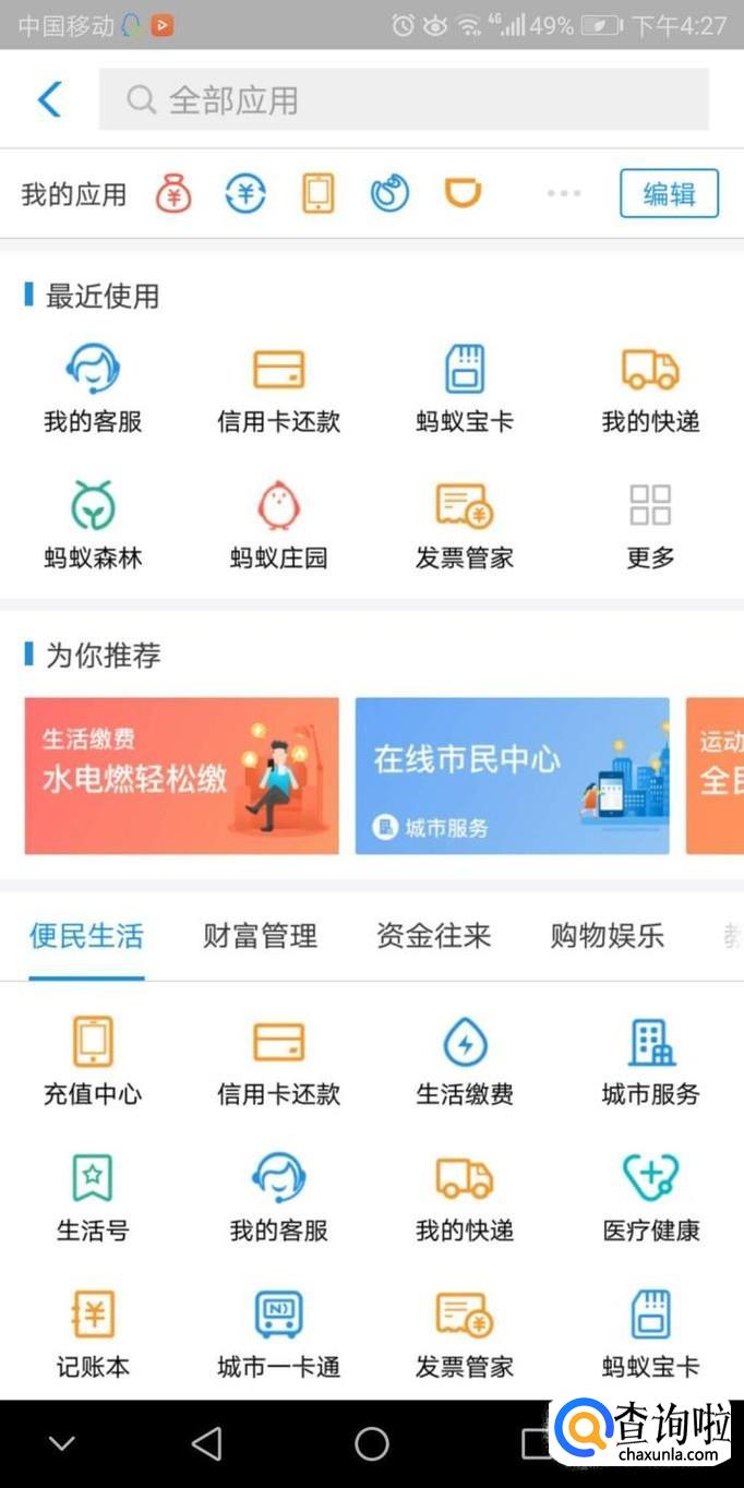 打开并登录手机支付宝后,点击首页的更多进入。接着选择便民生活里面我的客服。