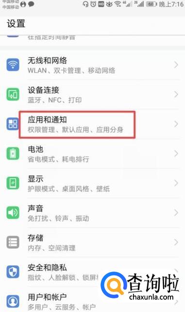 弹出的界面,我们点击应用和通知;