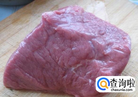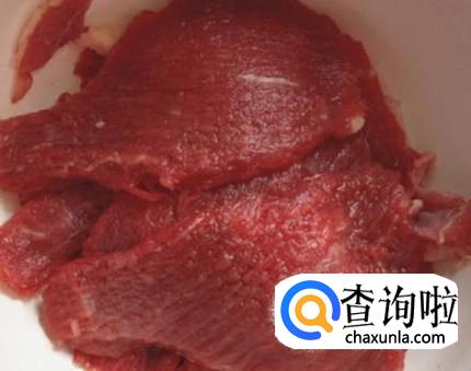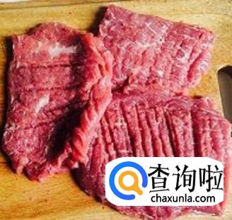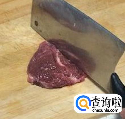 然后用刀背把牛肉块敲松。