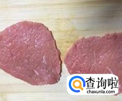 首先把牛肉洗干净,切成厚片。