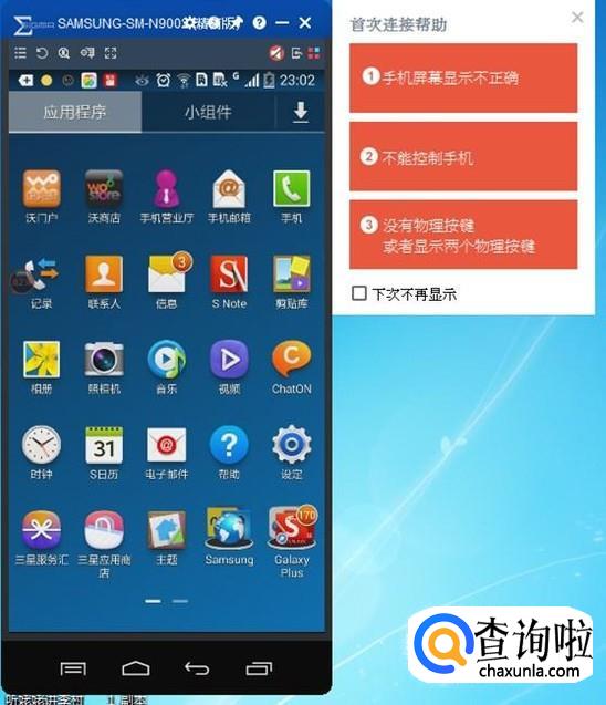 连接成功后电脑桌面上就出现了手机屏,显示你手机的桌面,你就可以用鼠标在电脑上操作手机了。