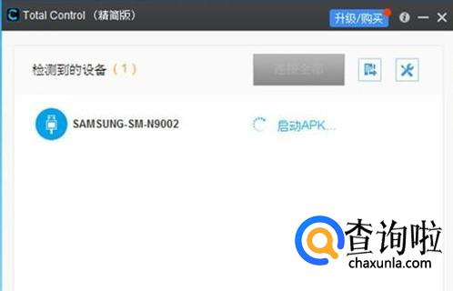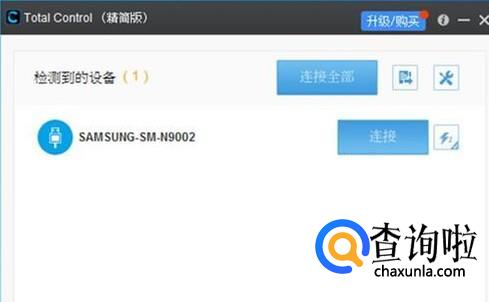 然后把手机用USB数据线连接在电脑上,打开Total Control,会搜索连接设备。