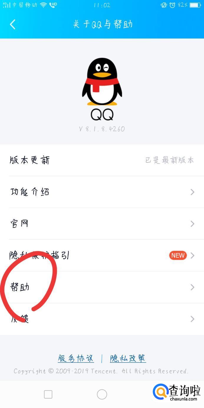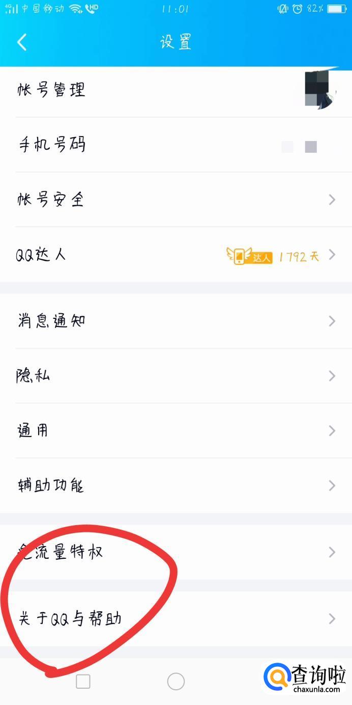在“帮助”页面中,我们先在菜单框中选择“号码安全”,再在其页面下点击打开“QQ解封”。