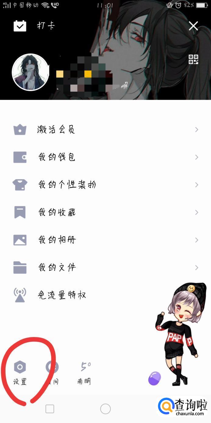 首先我们要登录一个可以正常登录的账号,登录之后,我们向右滑动屏幕,在菜单栏的左下角点击打开“设置”。