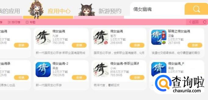 然后在弹出的页面里可以看到有许多的倩女幽魂版本,选择一个你喜欢的,比如官网的版本进行安装