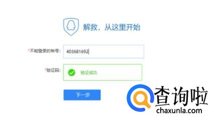 在新弹出来的界面里输入需要解封的QQ号,然后点击下面的“下一步”,如下图所示。