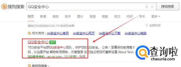 在搜索界面点击进入“QQ安全中心官网”,如下图所示。