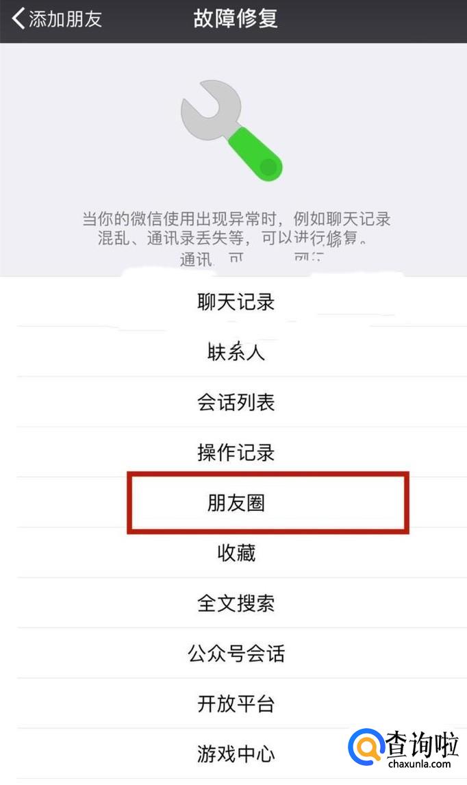 然后点击朋友圈,如下图所示。