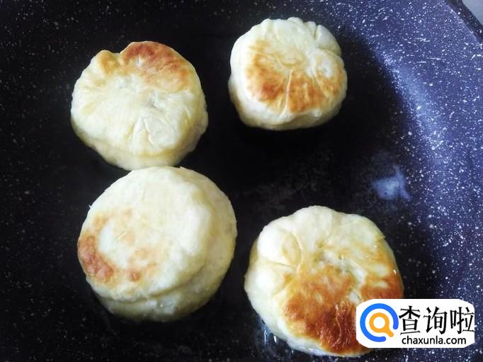 开火下油,把做好的饼放到锅里用小火煎,煎至两面金黄色大概6分钟左右就可以了。