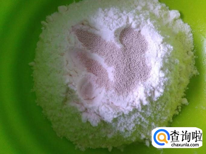 把面粉放到盘里,加酵母【按说明下料】1个鸡蛋。