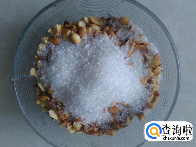 把脱皮好的花生放置保鲜袋,用硬物压碎。【不用压得太碎】