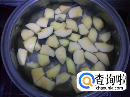 锅子清洗干净,把苹果块放进去,加上适当清水用大火煮开,小火慢慢的煮。