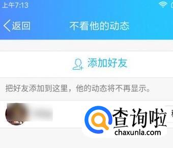 在这里,点一下“动态权限设置”,转到其设置界面。在这里找到“不看他的动态”;并点一下,进入其设置界面。然后,点“添加好友”;所添加的好友我们即不会再看到他的动态。