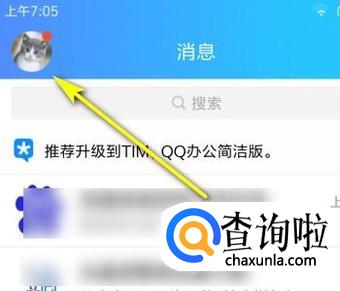 手机上登录QQ;然后,在进入的界面中点左上角自己的头像。