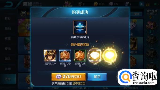 我们购买相应的次数就可以获得相应的积分,有270钻石就可以抽奖五次,就可以获得五个积分,当积分到达200时就一定会抽中王者水晶。