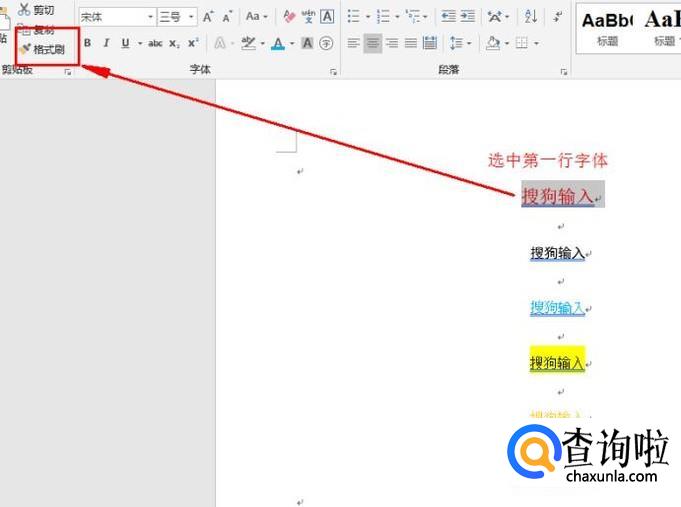 选中第一行字体,双击“格式刷”。