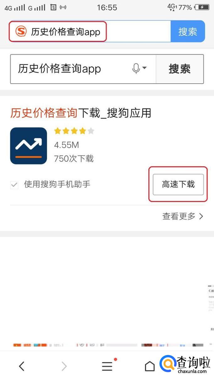 首先,我们要在手机下载一款免费软件,如图所示,手机浏览器搜索“历史价格查询”,下载并安装该app到手机上。