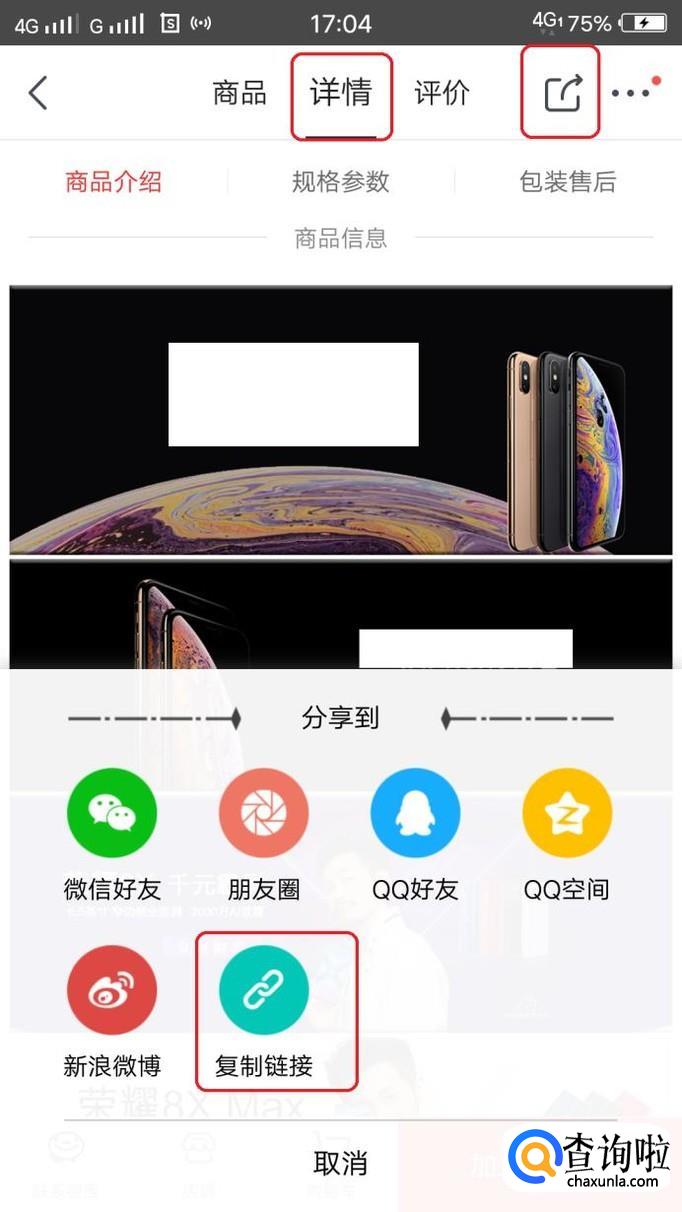然后,我们任意打开一个商品详情页(以京东为例),如图所示,点击右上角分享按钮。