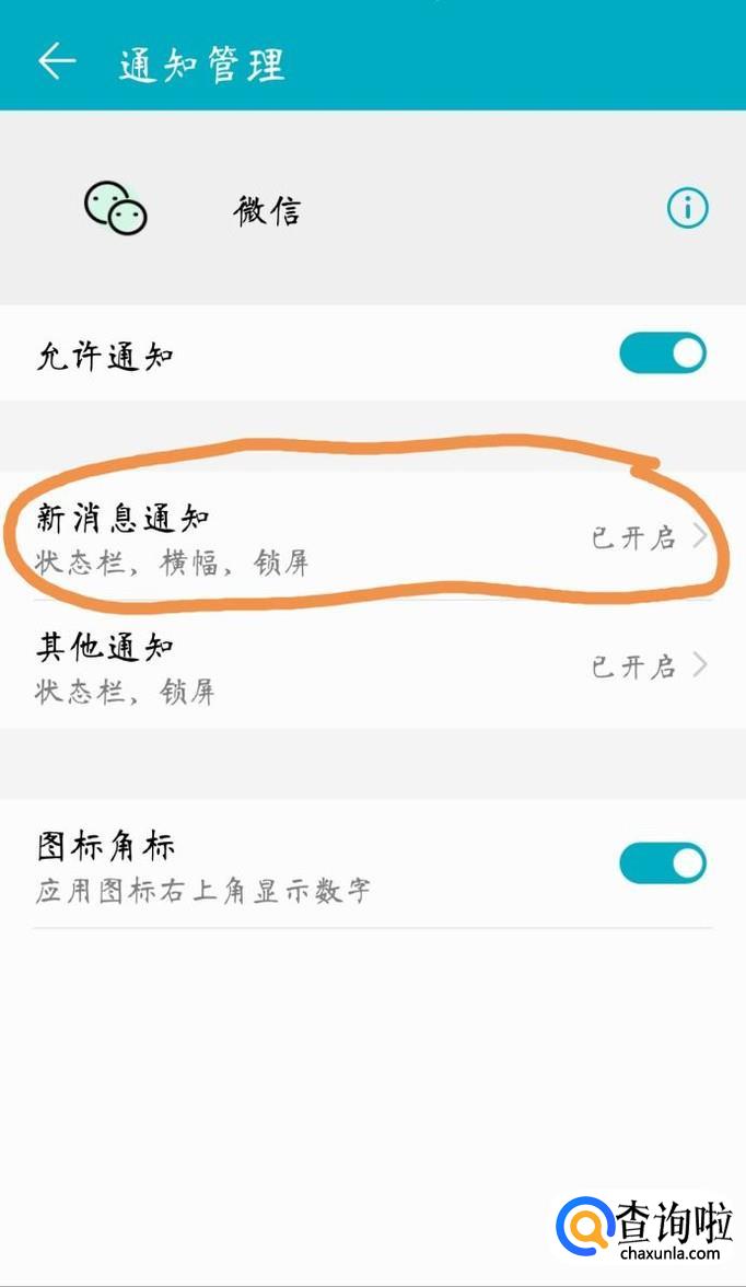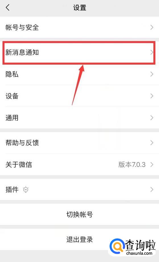 在微信的通知管理界面可以看到有一个“新消息通知”的选项,点击进入。