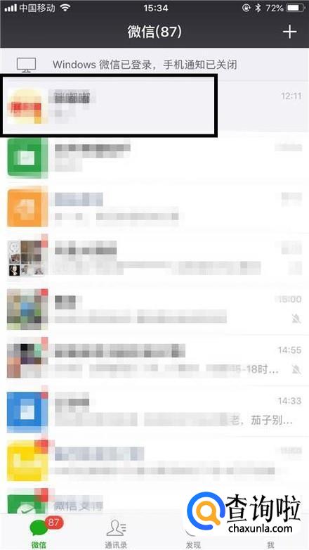 接着找到我们刚才所说长的聊天记录并点击它,如下图所示。