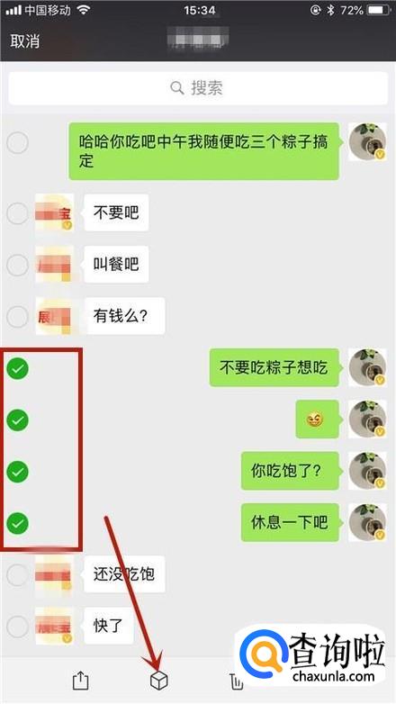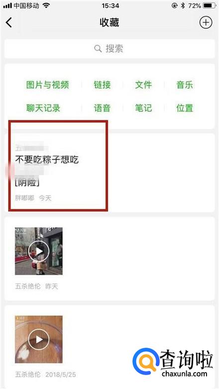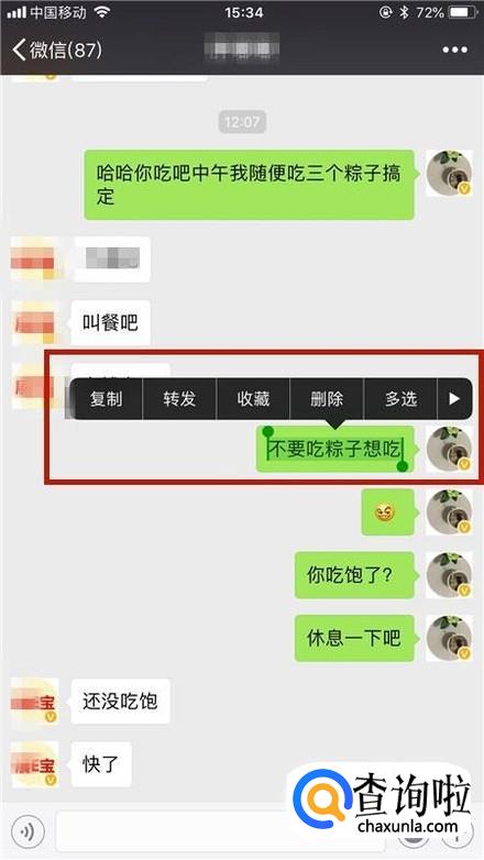 接着选择我们要转发的聊天信息并点击收藏图标,如下图所示