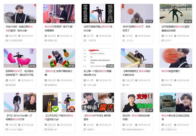 在今年1月,或许是因为高人气,NBA选择了蔡徐坤作为首位新春贺岁形象大使,这个消息立刻激怒了一众热爱篮球的论坛直男们,毕竟大家虽然不会演戏、说唱、玩音乐,但是真的会打篮球呀……于是一个蔡徐坤打着篮球突然开始尬舞的视频被翻了出来,魔性的画风让人欲罢不能,bgm中的歌词更是被空耳成了“鸡你太美”流传开来。B站鬼畜区迅速被“蔡徐坤打篮球”屠榜,只要输入他的名字,甚至无需选择分区,你就会看到这样的盛况……